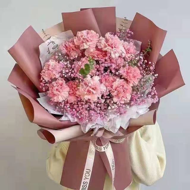 19粉康乃馨加粉星鲜花束,如图包,包装纸也用图的 |