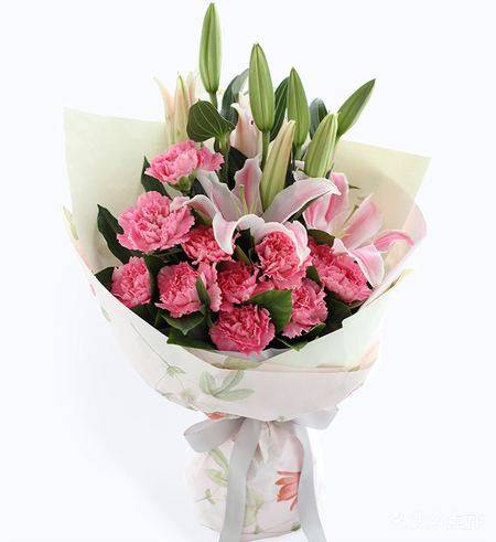11支粉康乃馨2支百合鲜花束 |