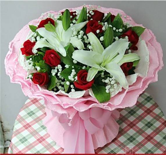 1束粉蓝色漫天星花束,花材新鲜,包装大气,有卡片,如图 |