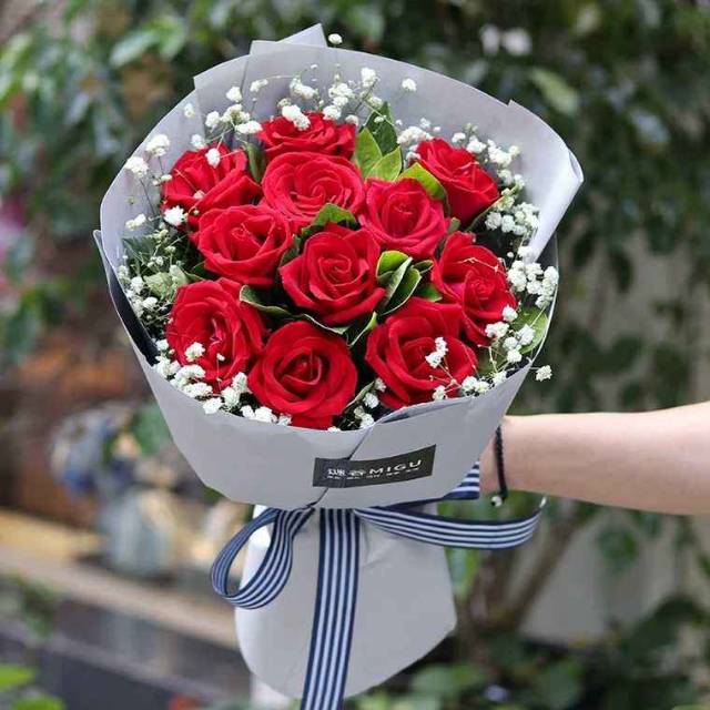 11支粉康乃馨4支红玫瑰花束,如图 |