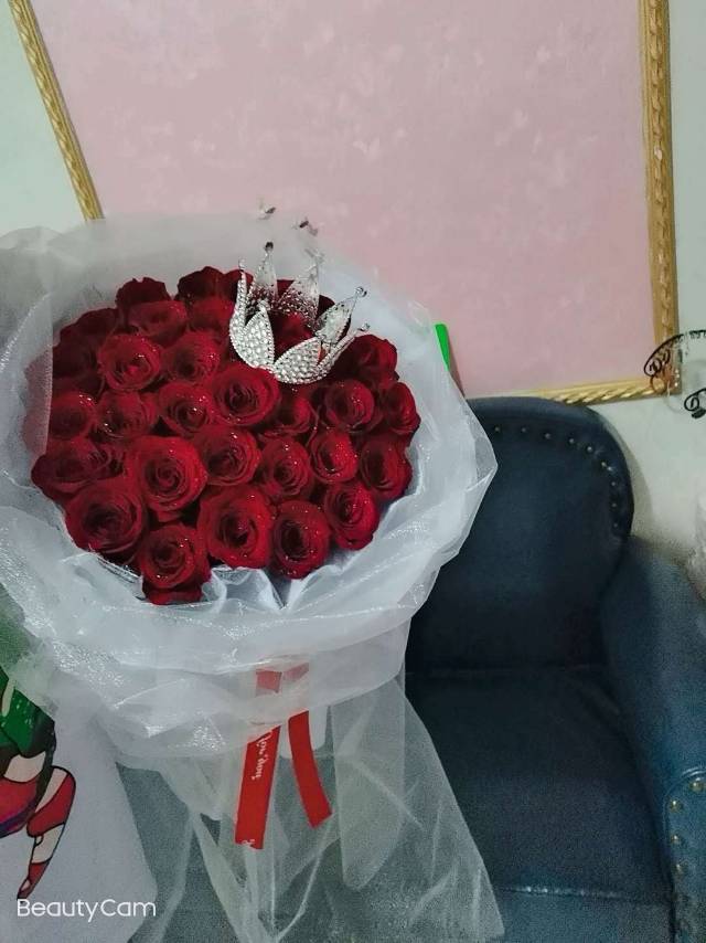 28朵红扶加3朵粉百合花蓝一对(2个)。如图包 |