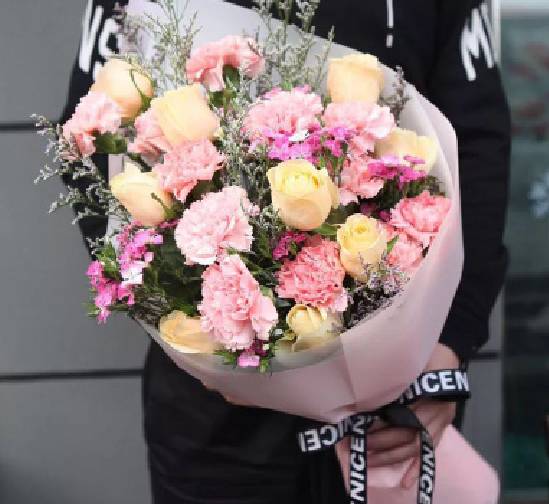 夜上海论坛11支粉康乃馨4支红玫瑰花束,如图 |