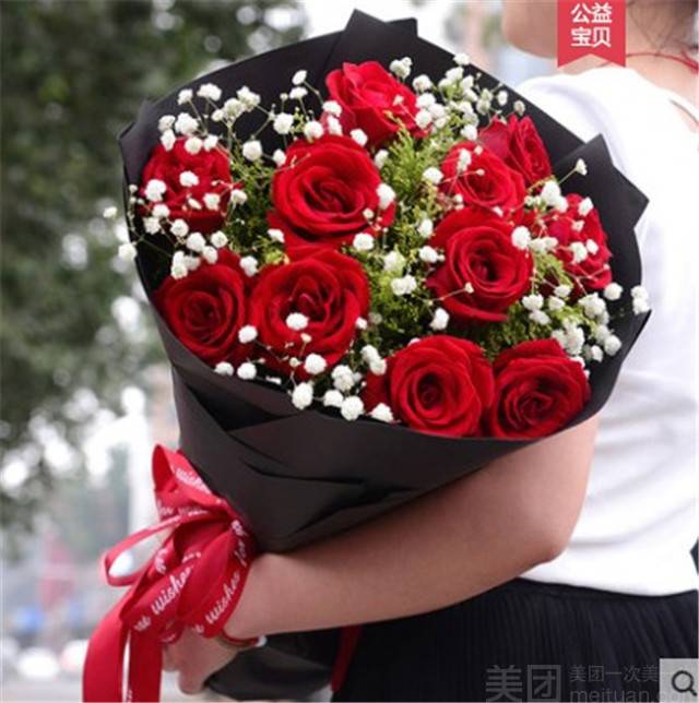 11朵红玫瑰花束如图