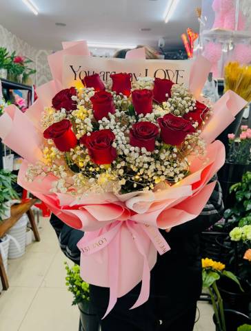 夜上海论坛11朵红玫瑰满天星花束 加彩灯 按图 |