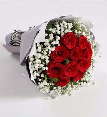 夜上海论坛11朵粉玫瑰2朵向日葵混搭满天星花束 款式包装如图 花材新鲜 |
