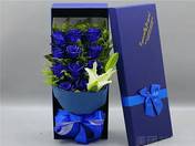 11朵蓝色妖姬1支百合礼盒,如图包装,有卡片,按时送达 |