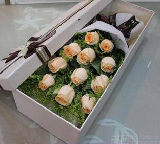 夜上海论坛11朵香槟玫瑰礼盒,如图包装,有卡片,尽快送达 |