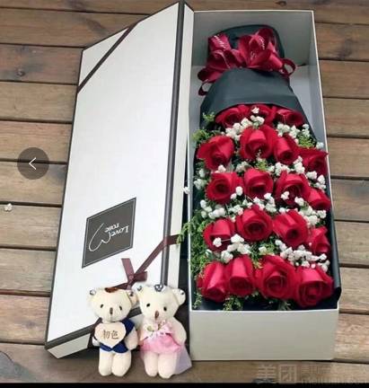 图1:11朵红玫瑰2小熊礼盒装 数量:1 |