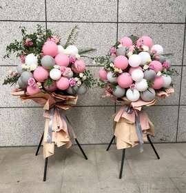 夜上海论坛时尚气球开业花篮一对(2个),每个花篮:22个气球+10朵混搭花束花篮,如图包装大气好看,有贺词 ,按时送达。 |