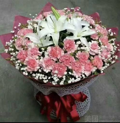 33支红色康乃馨2支多头百合花束 数量:1 |