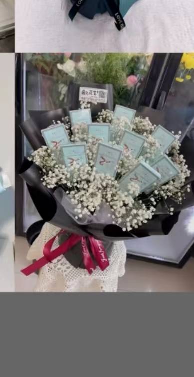 13支香槟1支白桔梗再配点白色满天星花束 |