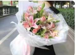 夜上海论坛11朵粉玫加4支粉百合花束,如图包 |