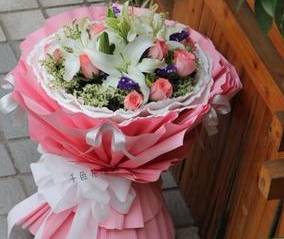 夜上海论坛11朵粉玫瑰13朵粉百合花束鲜花束,如图 |