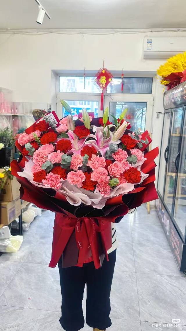 33支红 粉康乃馨+3支多头粉百合混搭花束 |