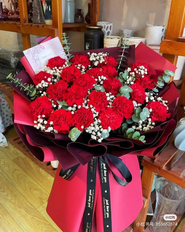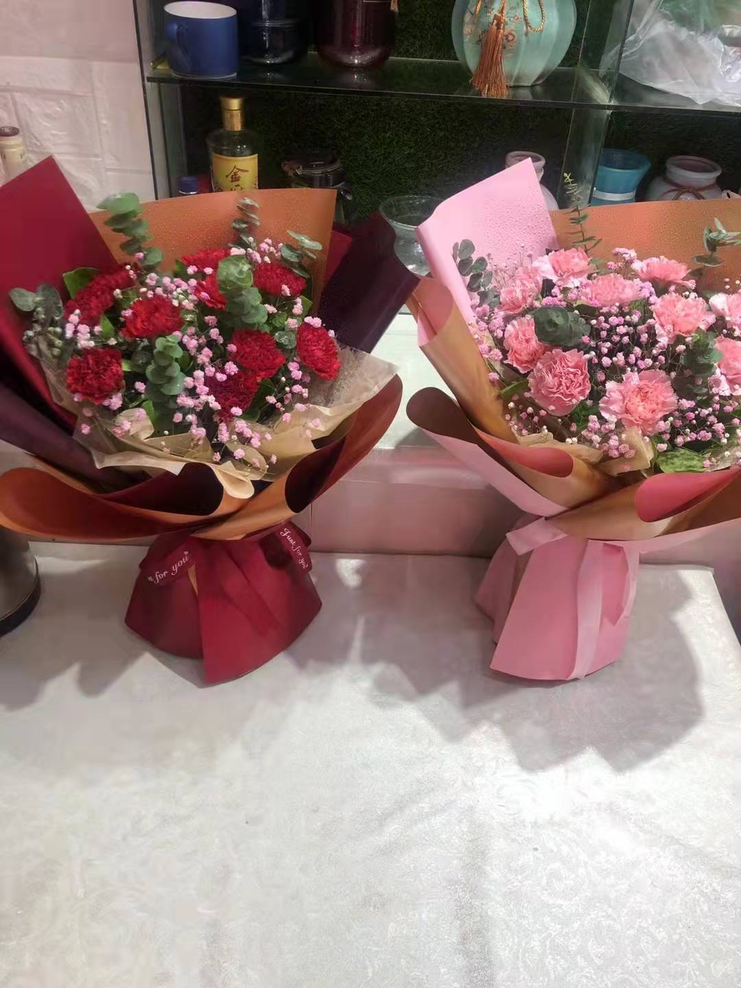 11朵粉康乃馨4朵红玫瑰花束 按图包装 |