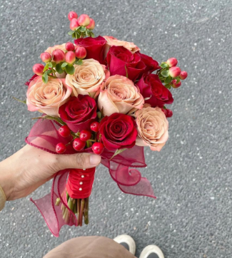 夜上海论坛2支粉绣球+1支蓝绣球+10支香槟玫瑰混搭花束 |