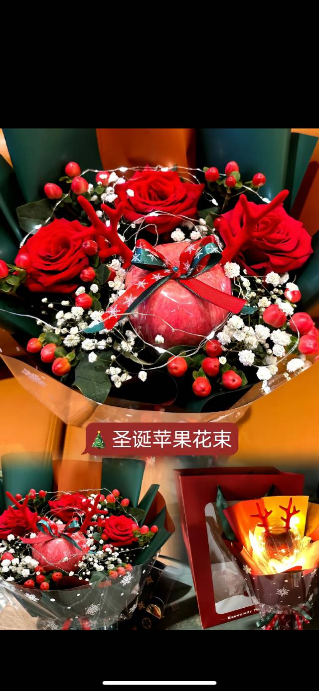 3朵玫瑰 一个苹果花束 按图包装 |
