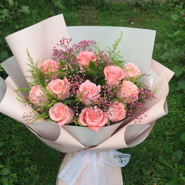 夜上海论坛11朵粉玫瑰13朵粉百合花束,如图包装 |