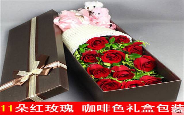 夜上海论坛11朵粉玫瑰礼盒带小熊 |