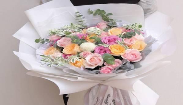 夜上海论坛6朵粉玫粉色满天星花束,如图 |
