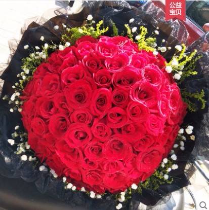 99朵红玫瑰黑纱款,搭配黄英,满天星。如图制作。花要新鲜,保证质量 |
