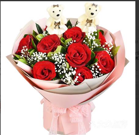 7支白玫瑰+2支粉玫瑰鲜花,如图 |