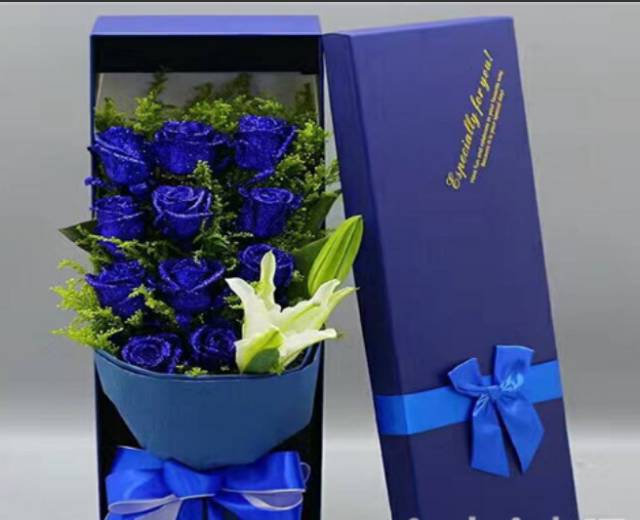 夜上海论坛6朵粉玫瑰蓝粉色满天星混搭花束,如图 |