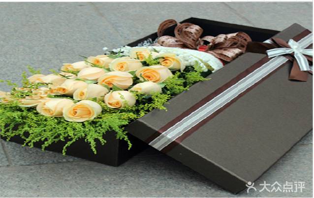 19朵粉红白香槟玫瑰鲜花礼盒 样式如图 |