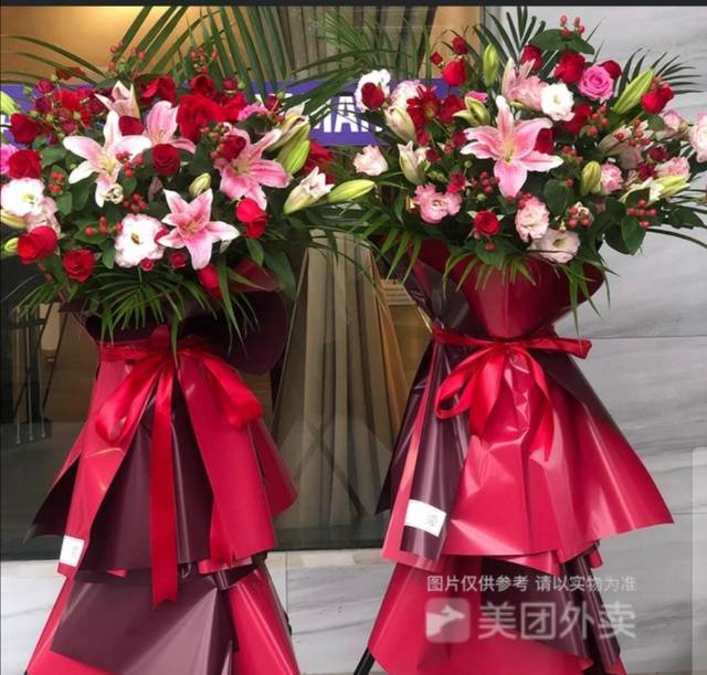 夜上海论坛玫瑰红豆粉百合混搭开业花篮一对 如图 |