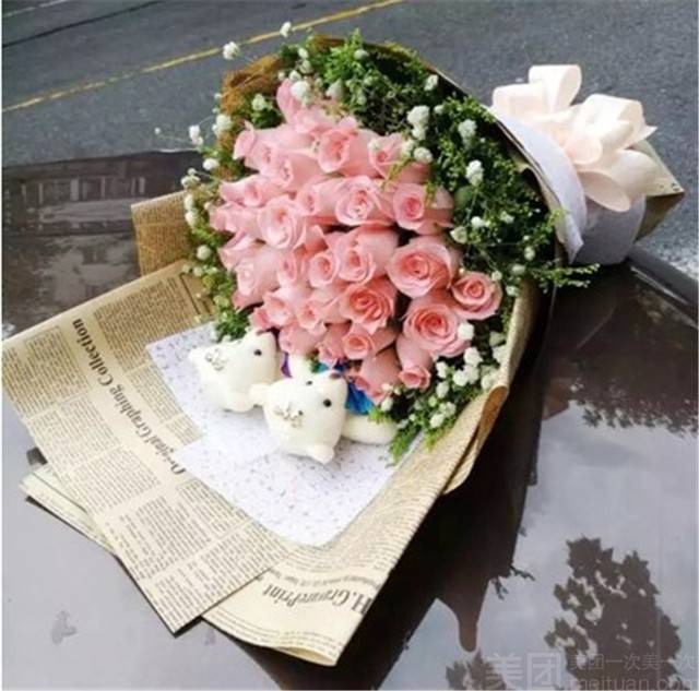夜上海论坛33朵粉玫瑰花束带两小熊 |
