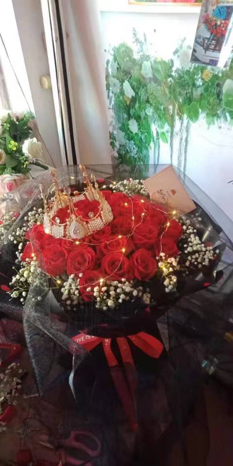33支精品红玫瑰加纱加皇冠花束。如图包 |
