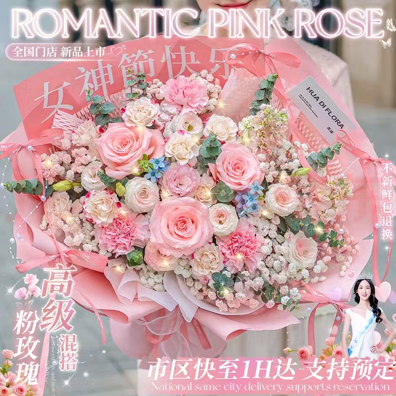 11朵粉玫瑰13朵粉百合花束,如图 |