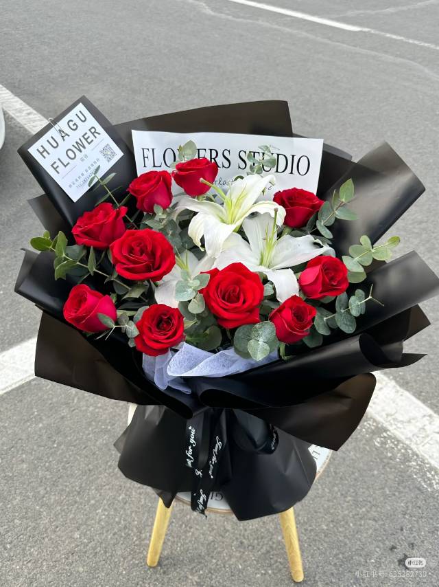 11朵玫瑰2支百合花束 按图包装款式做 |