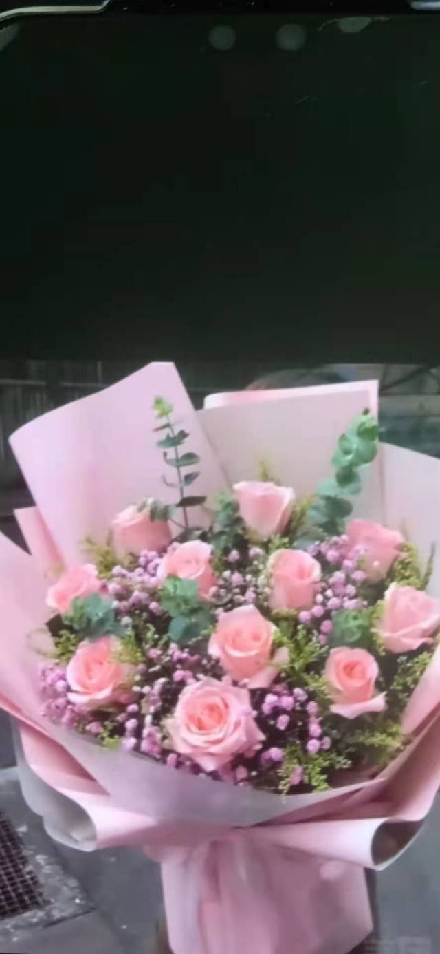 图1:11朵粉玫瑰配白色洋桔梗花束 数量:1 |