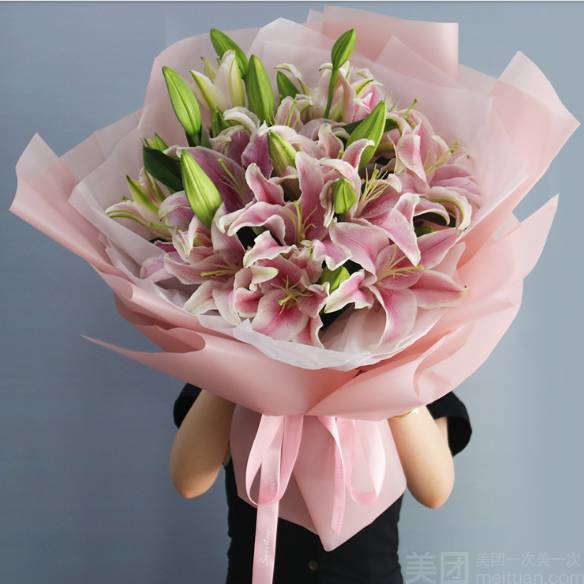 11朵粉玫瑰13朵粉百合花束,更换为19朵粉玫鲜花,包装大气 |