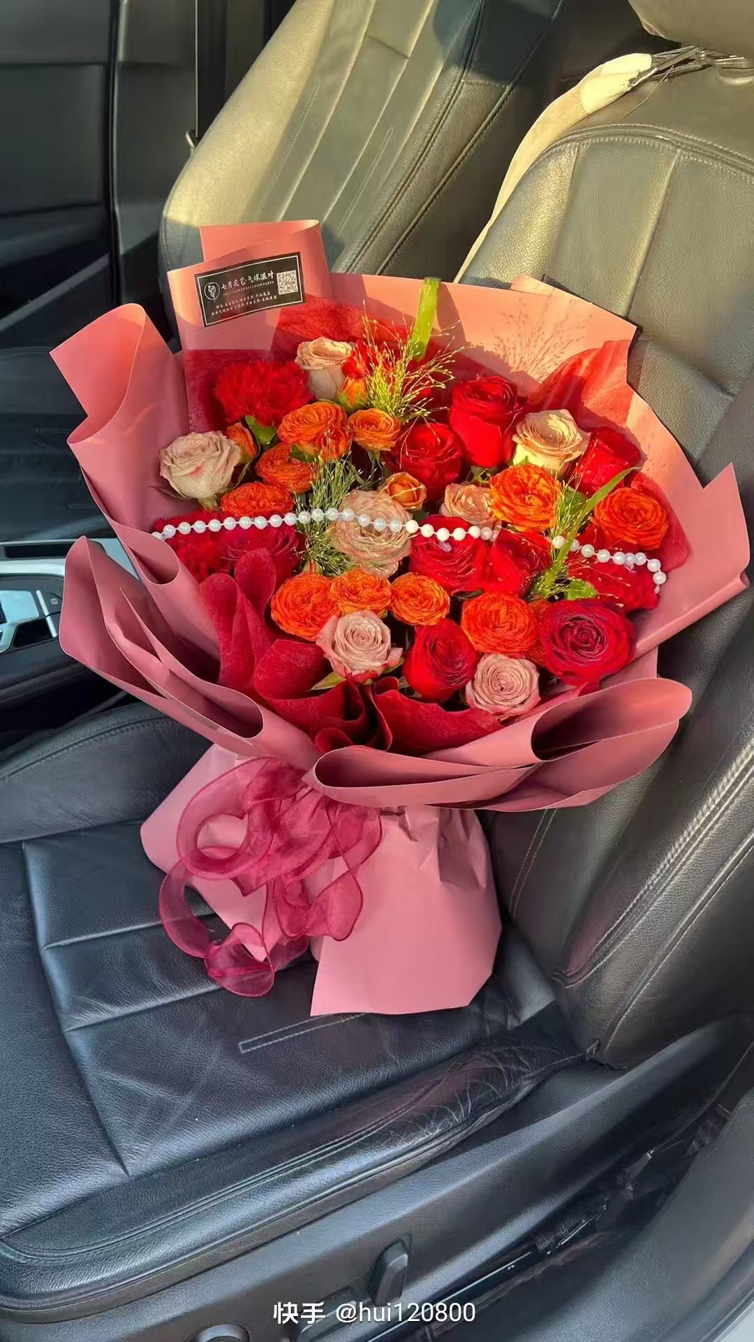 夜上海论坛副驾花和一束19朵的碎冰蓝花束,加灯串 |