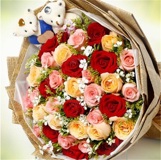 夜上海论坛33朵混搭玫瑰2小熊花束 |