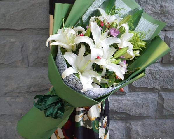 夜上海论坛19朵粉色康乃馨3支多头白百合花束,如图制作 |