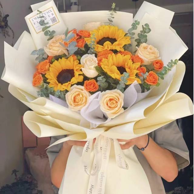 6朵香槟3向日葵多头玫瑰混搭花束 如图包装 |