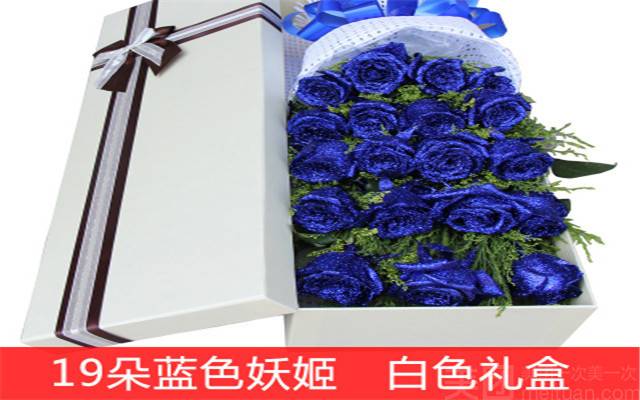 夜上海论坛19朵蓝玫瑰鲜花礼盒如图,做好就送