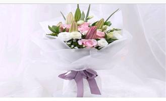 6支代安娜粉枚加4支桔梗加2支百合,花束如图 |