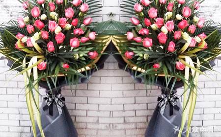 开业大吉三脚架开业花篮一对 如图 (花材:30朵玫瑰加15朵梗桔) |