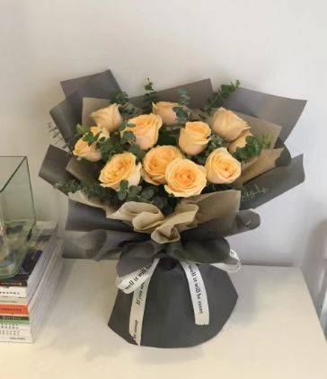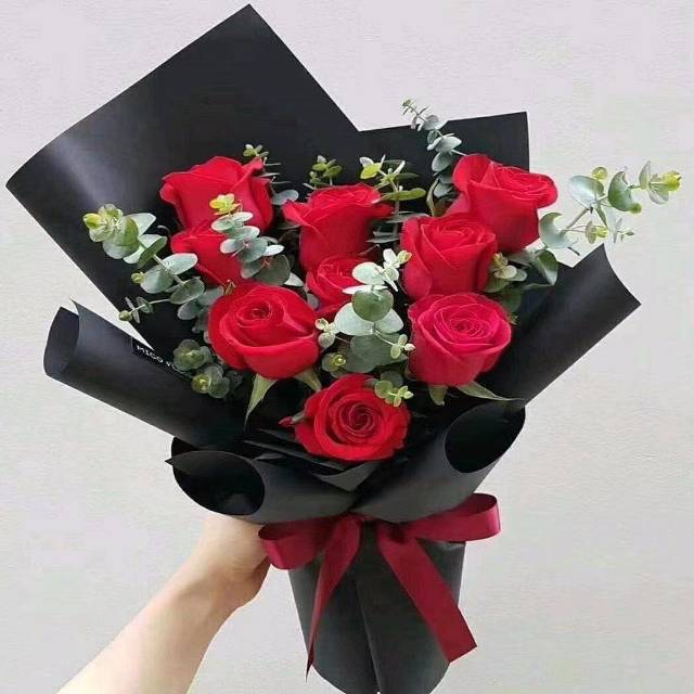 夜上海论坛9朵红玫加满天星鲜花束 |
