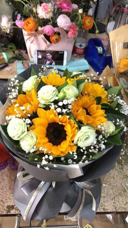 夜上海论坛6朵向日葵加桔梗混搭花束 款式包装如图 |
