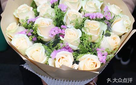 夜上海论坛6朵粉玫瑰蓝粉色满天星花束,如图 |