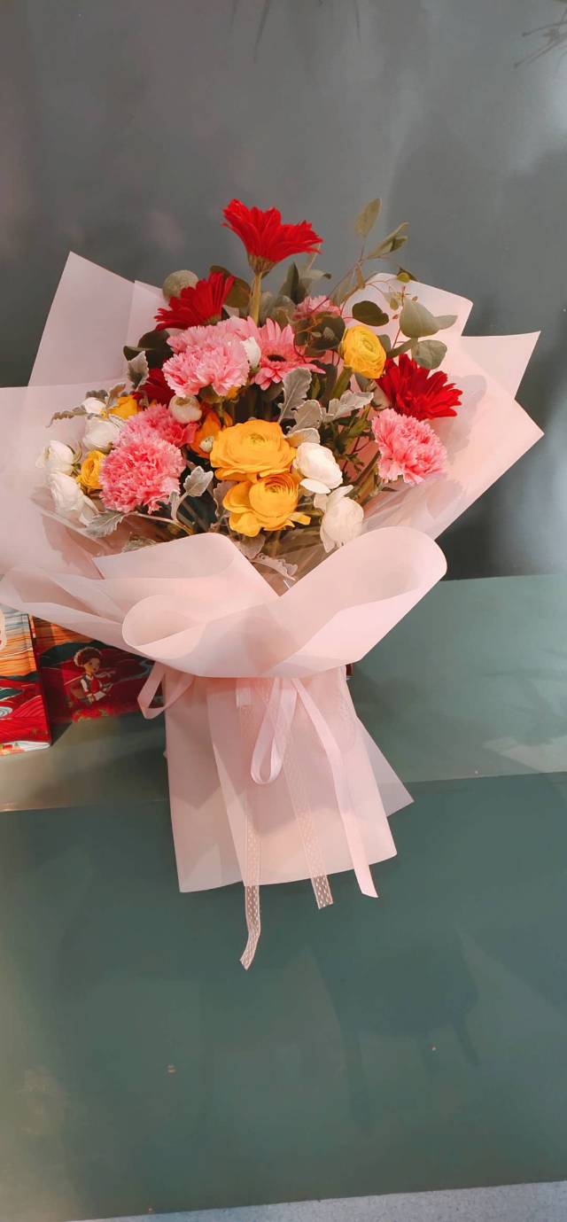 夜上海论坛19朵康乃馨5朵粉色百合花束,如图包装,客户到店自提 |