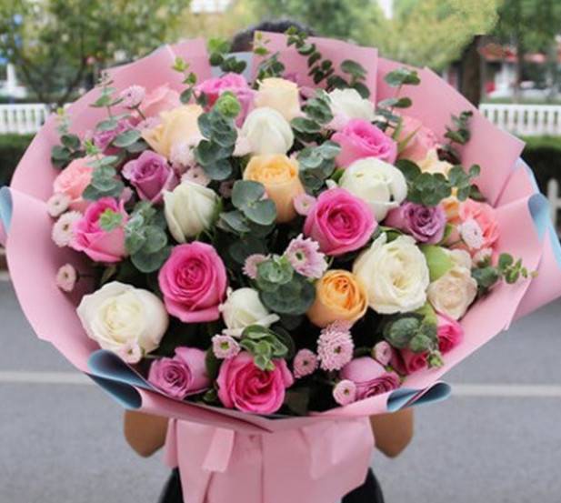 7支白玫瑰2支粉玫瑰花束,如图 |
