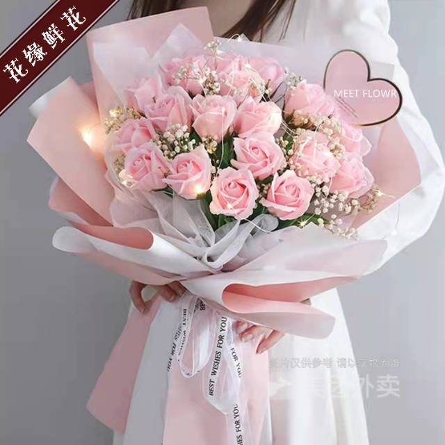 夜上海论坛19朵粉玫瑰配满天星花束如图 |