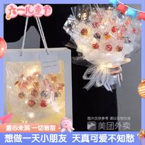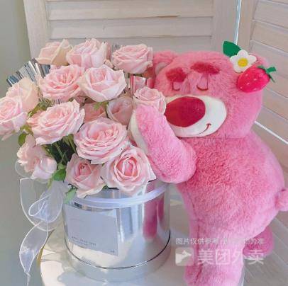 19枝粉玫瑰花草莓熊镜面抱抱桶 |