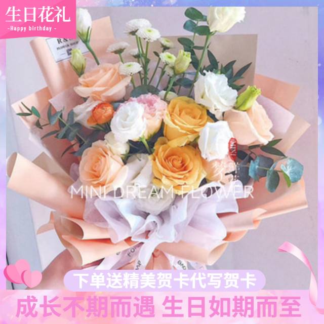 夜上海论坛香槟玫瑰混搭桔梗鲜花束 |